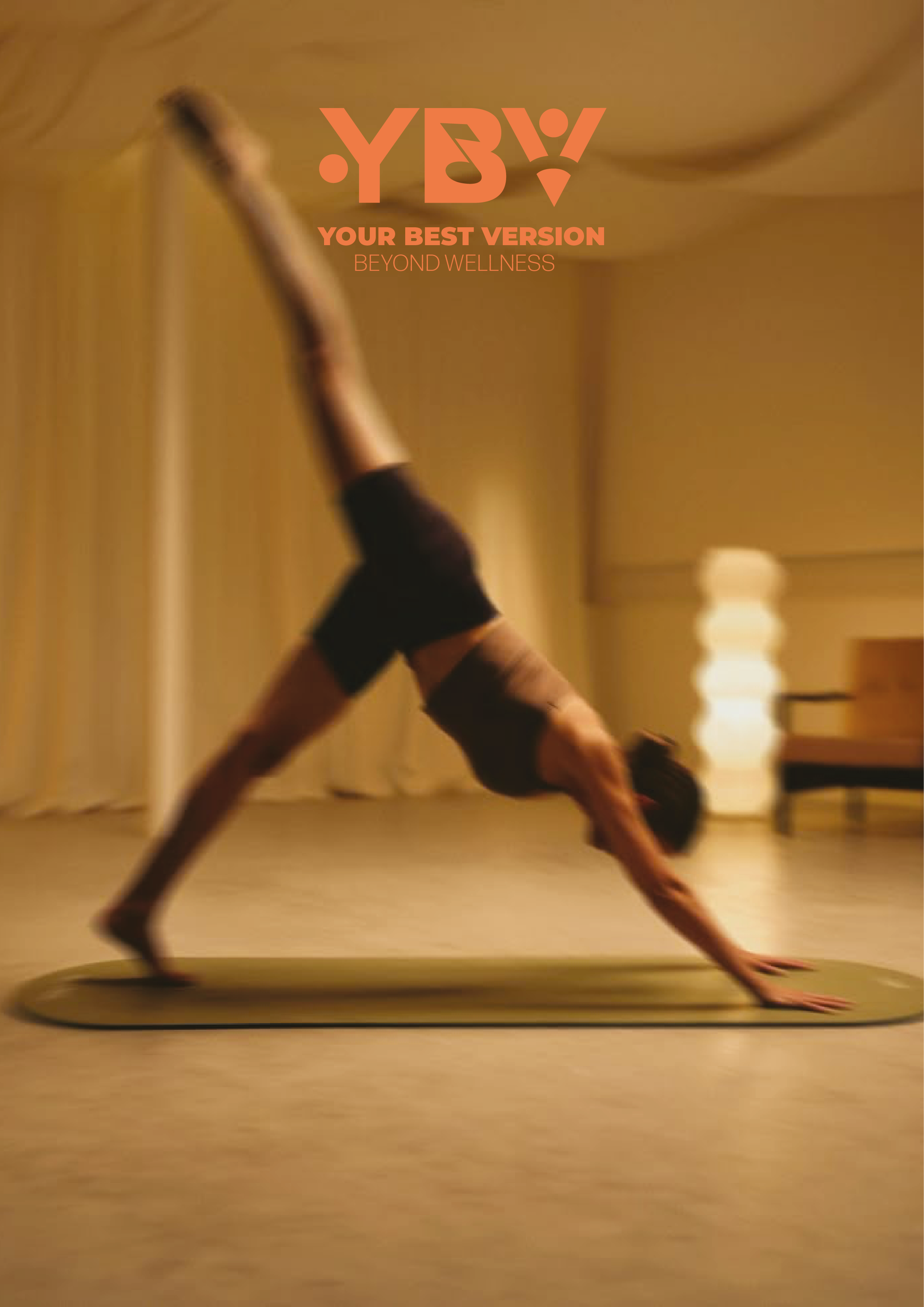 I created a logo for “YBV – Your Best Version”, with the tagline “Beyond Wellness.” The visual identity needed to be based on those concepts together. I decided to use each letter for each concept : Y incorporates a symmetrical, grounded shape, reflecting yoga’s balance and mindfulness; B has a bold stroke with a music note cut; V features the weight lifting.